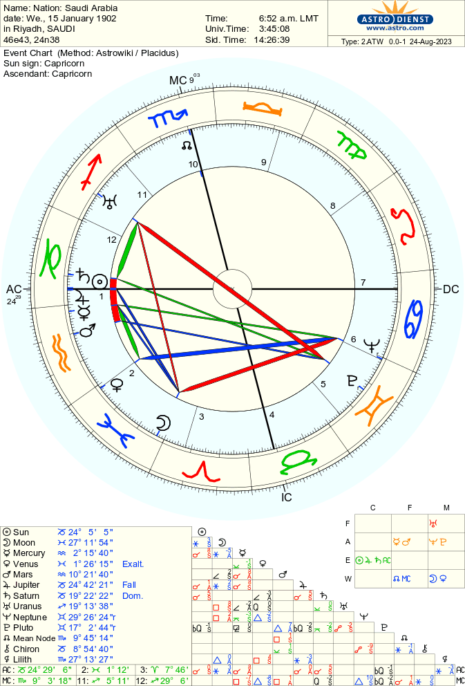 Saudi Arabia has been changing in all levels as ever before. Since 2020 with the World Cup 2020 celebrated in Qatar (Pluto was transiting the ASC at the same time = World is looking into one place), it started to change their image worldwide. The social and economic reforms are moving ahead in ways where the country will radically change on the next 20 years.